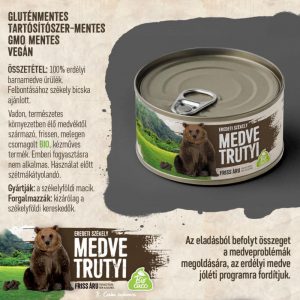 „Vadon, természetes környezetben élő medvéktől származó, frissen, melegen csomagolt BIO, kézműves termék. Emberi fogyasztásra nem alkalmas. Száraz hűvös helyen, napfénytől védve tárolandó. Használat előtt szétmákátyolandó.